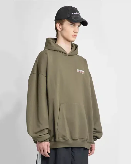Balenciaga men’s green large fit political logo hoodie