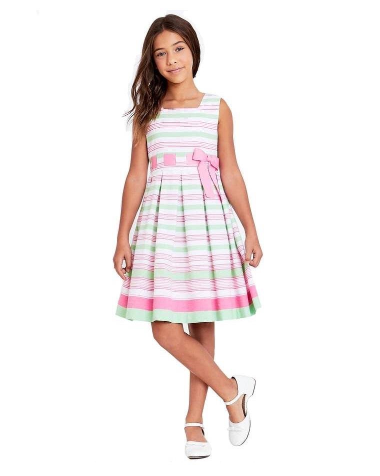 Charming stripes combine with a fit-and-flare silhouette on Bonnie Jean’s lovely sunny-day dress.