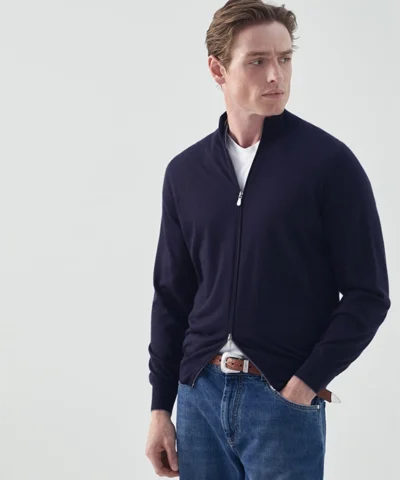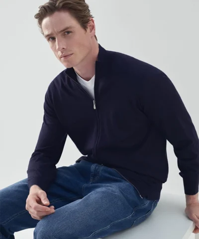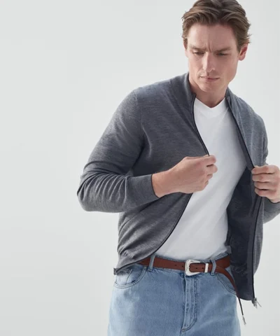 The versatile and timeless feel of this cardigan is paired with the precious qualities of cashmere and silk. The yarn’s plush and ultra lightweight texture showcases the iconic colors of the Menswear collections, which stand out thanks to the contrast color used for the die-cast zippers and the edges of the rib-knit cuffs. Its fit is characterized by its regular, comfortable proportions.