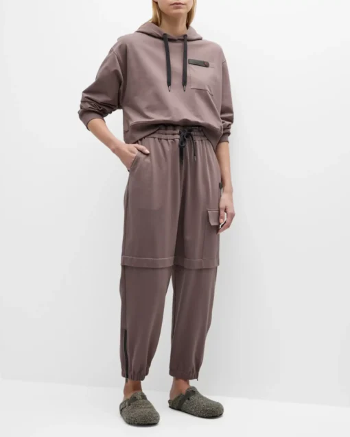 Brunello Cucinelli Monili-Tab Cotton Felpa Crop Hoodie