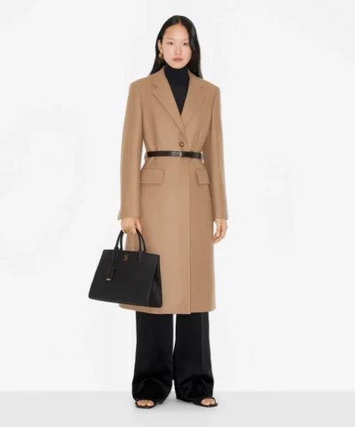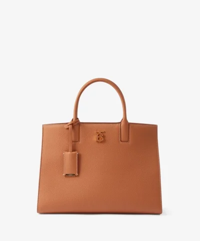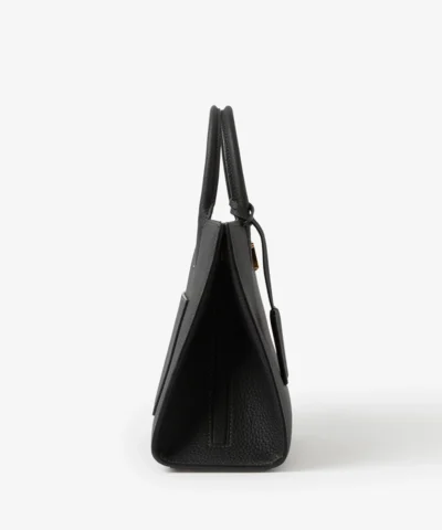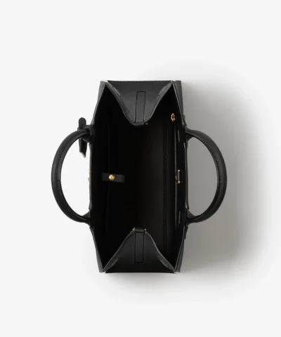 - A structured tote made in Italy from grainy calf leather. The compact design features the Thomas Burberry Monogram and a leather-wrapped mirror charm. Carry in hand or by the detachable shoulder strap.