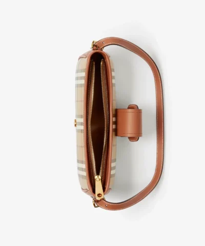 • An Italian-made bag in Burberry Check, the style is defined by a buckled strap inspired by our signature trench.