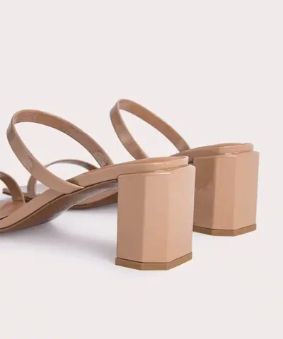 A barely-there classic, the Tanya mule in nude patent leather has become a staple for BY FAR. Characterized by the brand’s signature square toe, its minimalist silhouette is refined to two slim straps and a custom geometric block heel.