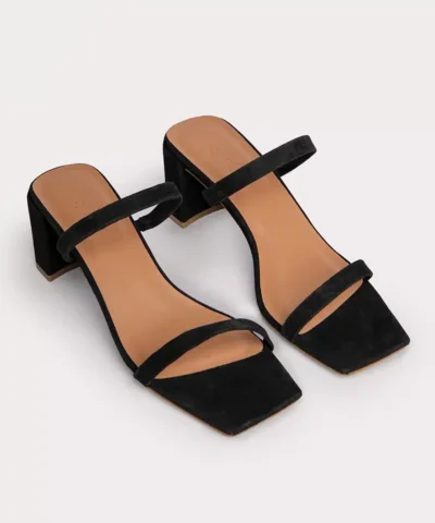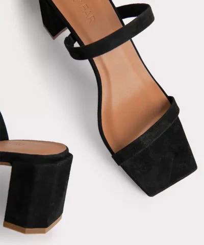 - Sculpted block heel, covered with leather