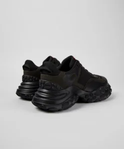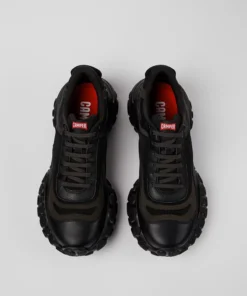 Black textile/leather men’s sneakers with lace closures, recycled OrthoLite® footbeds, and XL EXTRALIGHT® EVA outsoles.