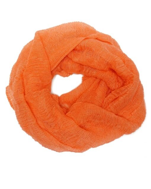 Lightweight infinity loop scarf in bright colors with metallic detailing.