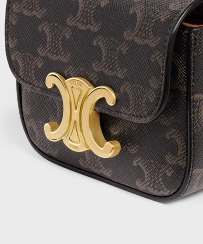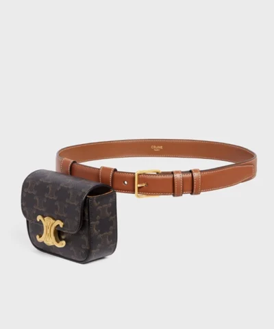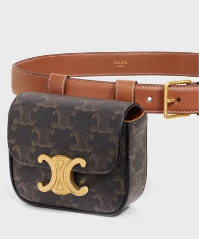 Celine Triomphe Belt Bag In Canvas And Calfskin Tan