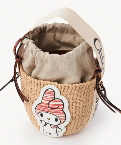 Small basket in fair-trade paper decorated with a My Melody leather patch, Chloé logo webbing & calfskin
