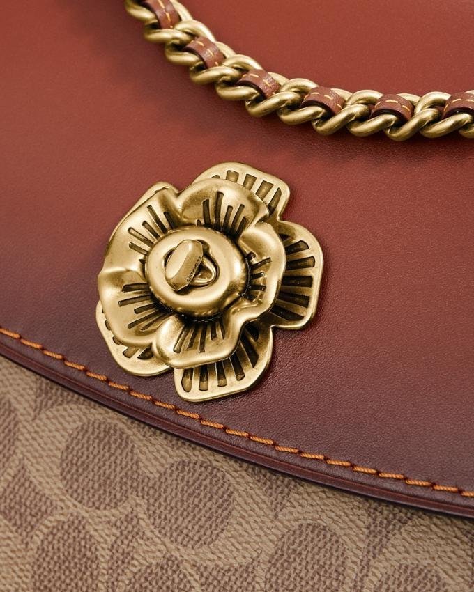 Structured and lightweight, the Parker is a versatile bag that combines uptown elegance with downtown ease. It’s crafted in a mix of smooth leather and Signature Coated Canvas and finished with our Tea Rose Turnlock closure. Convert the leather chain strap from long to two short handles.