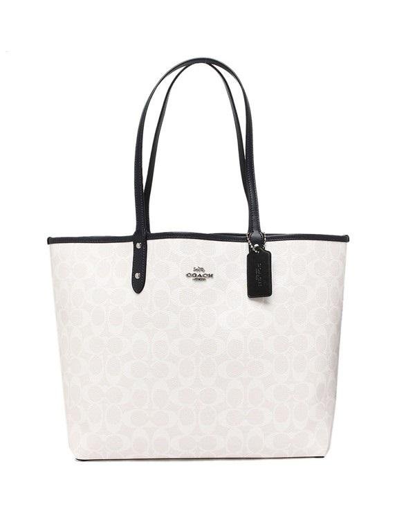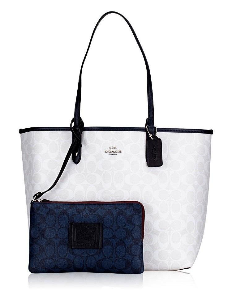 Crafted of signature coated canvas with leather trim. The bag features double handles, open-top to one large compartment with an optional pochette.