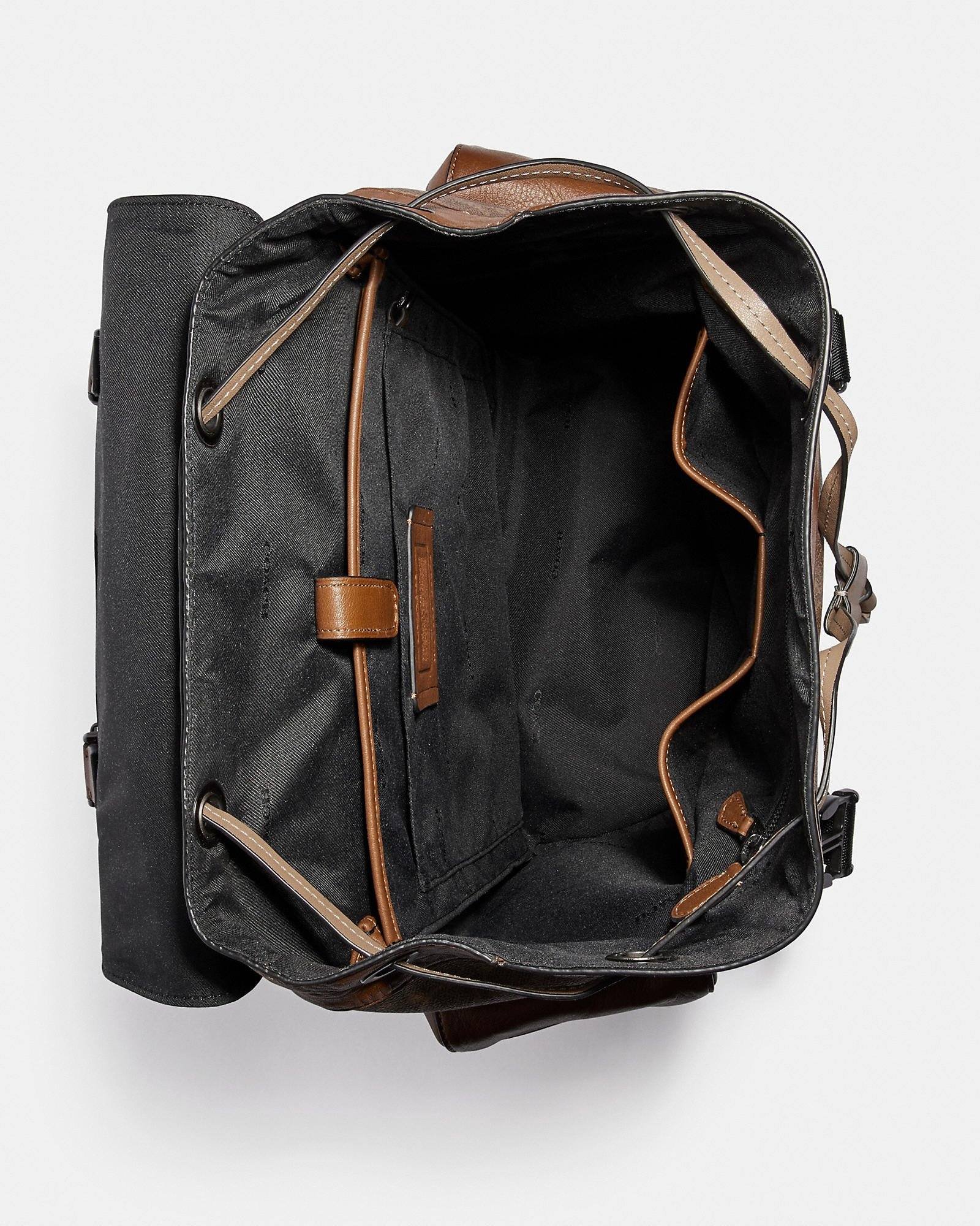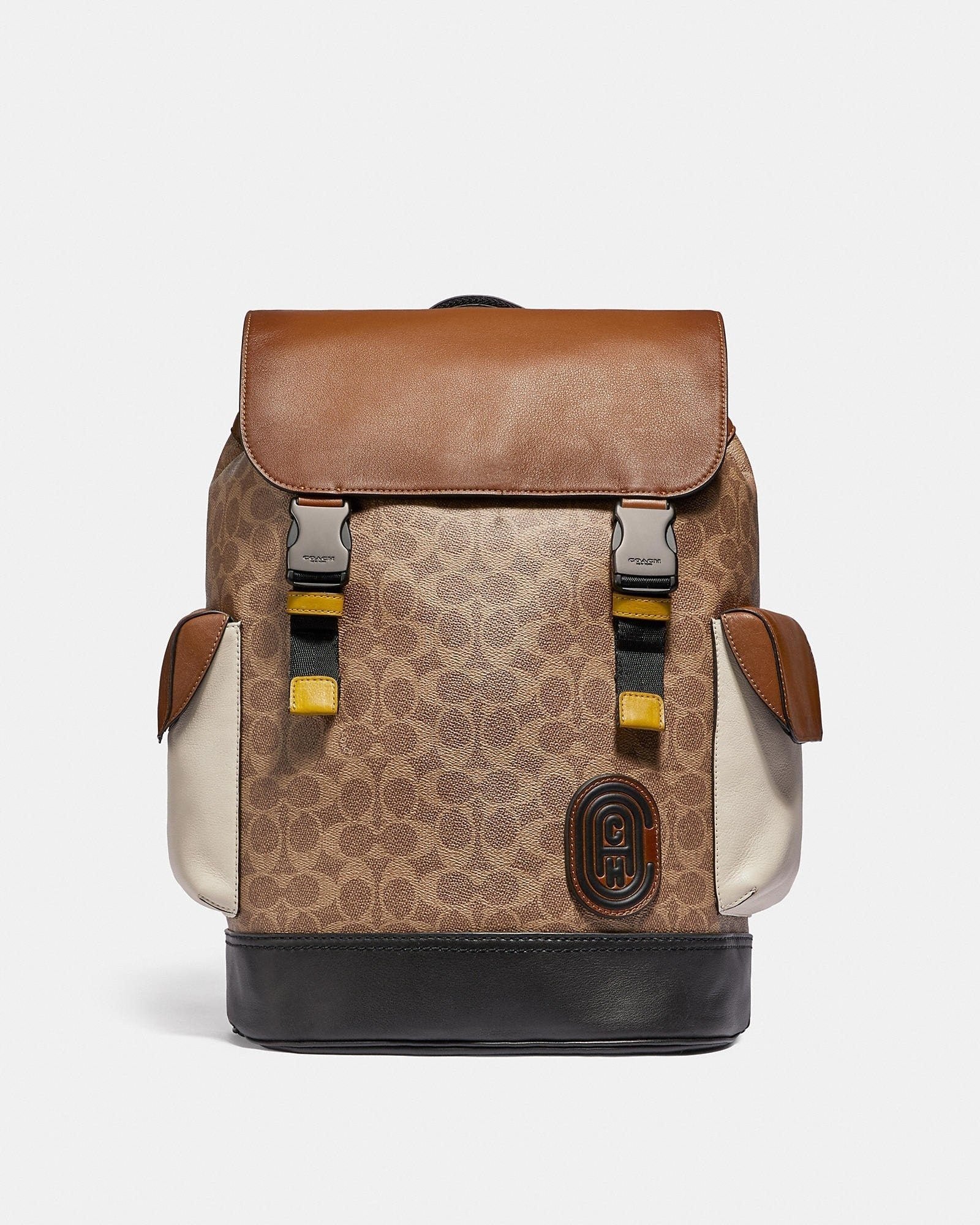 Like the New York City street it’s named after, Rivington mixes downtown cool with professional good looks. Finished with our Coach retro graphic, this soft backpack is crafted in a mix of our Signature canvas and smooth leather. The perfect bag for every day, it has lightweight mesh spacer panels, room for a 15″ laptop and multifunction pockets to keep everything neat and organized.