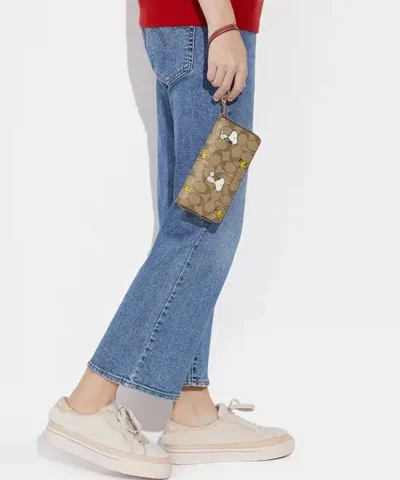 Coach X Peanuts Long Zip Around Wallet In Signature Canvas With Snoopy Woodstock Print