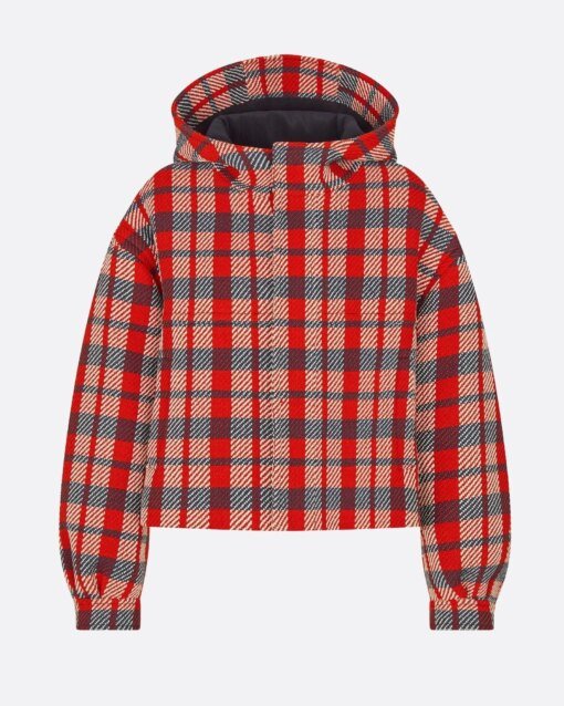 The hooded blouson is adorned with the Check’n’Dior motif for a colorful and contemporary variation. Crafted in red, black and white cotton and wool, it has a relaxed fit, enhanced by two piped side pockets. The blouson can be paired with a denim dress.