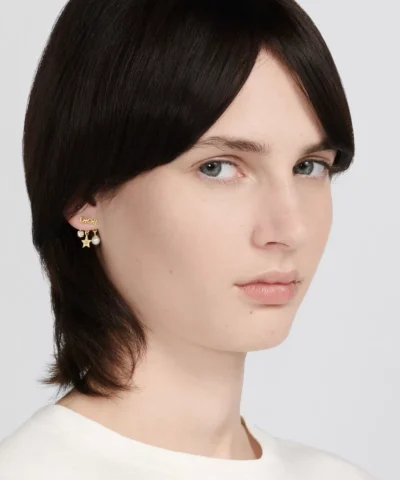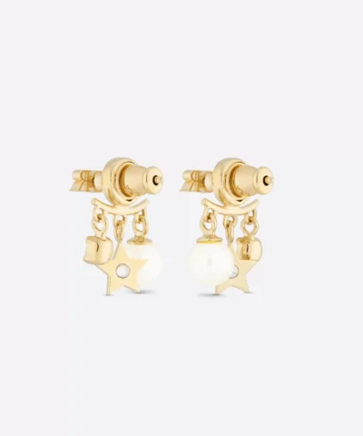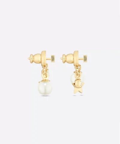 Dior Pearl Crystal Dio(r)evolution Earrings Aged Gold. Gold-Finish Metal, White Resin Pearls and White Crystals
