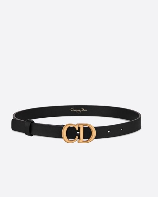 The Saddle Belt has become a House icon and wardrobe classic. Ultrasmooth calfskin gives it a smooth feel and elegant finish. The black style features the ‘CD’ buckle in antique gold-finish metal and has a slim silhouette that will add shape to a skirt, dress or pants.