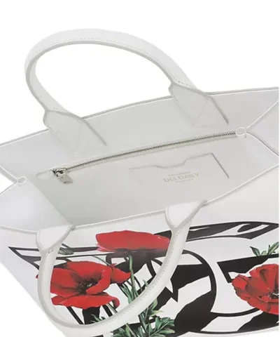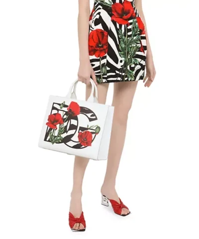 DOLCE&GABBANA’s tote features an oversized DG logo decorated in a bold zebra print and beautiful peonies. Made in Italy, this structured piece is crafted of rich leather.