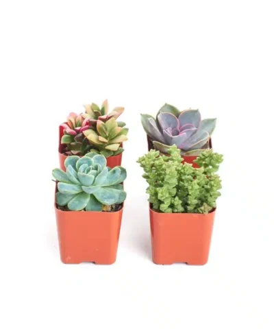 The Pastel Succulent Collection offers only the softer tones providing beautiful packs with stunning symmetry. These are perfect for wedding and events looking to achieve a balanced yet soft look to their favors and centerpieces. Each succulent is hand selected to boast an array of colors and a variety of texture. Each order is meticulously packaged in E Garden retail packaging which makes this pack a perfect gift! This pack will include only pastel succulents. Succulents come fully rooted in their square, 2 inch pots. All orders come with care instructions. Please be sure to promptly remove the plants completely from their boxes upon arrival. Often times the plants will need a little water, sun, and some loose soil gently brushed from leaves after transit. Plant measurement will vary as different species grow in different ways: for example, some grow wider, shorter, taller, trailing, etc.