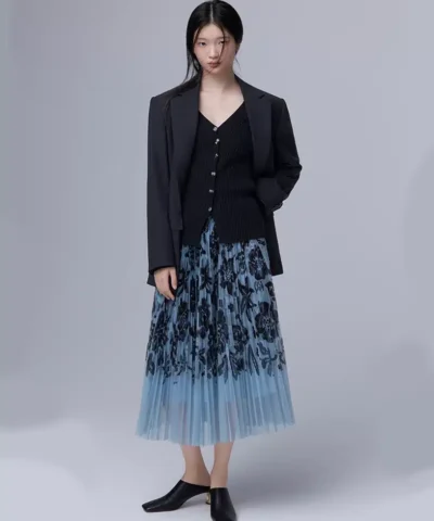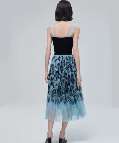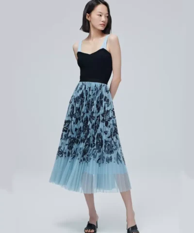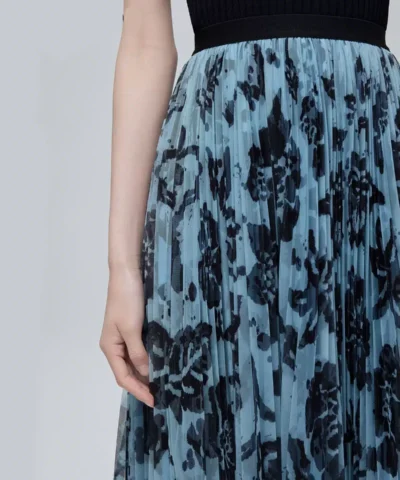 ERDOS 23 spring and summer new elegant double-layer chiffon pleated skirt female printed mid-length A-line skirt