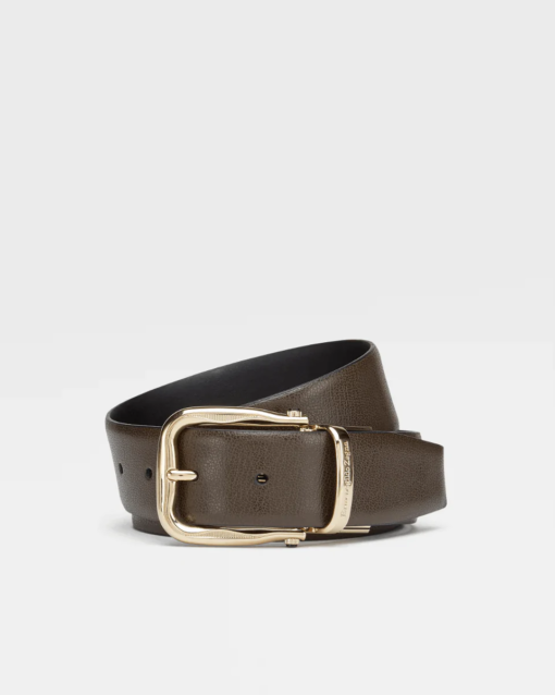 Reflecting ZZegna’s sporty tailored aesthetic, this smooth calfskin belt reverses from dark brown to black