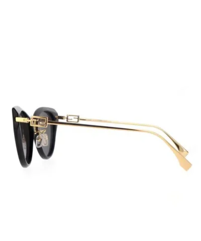 Rounded cat eye Baguette sunglasses made of black acetate. Finished with beige gradient lenses and gold-colored metal temples with FF Baguette motif.