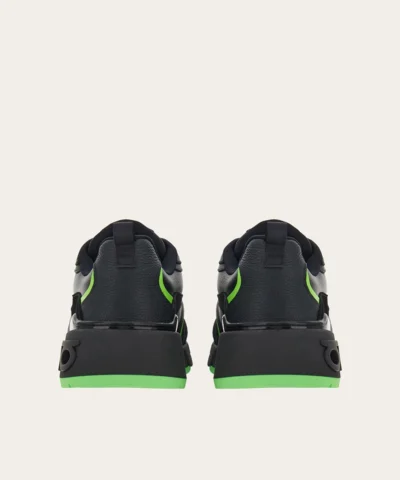 Dynamism and texture with iconic details bring this nineties inspired sneaker to life. The leather upper features suede inserts and a bold contrasting swirl that matches the tread. Double Gancio on the side of the heel.
