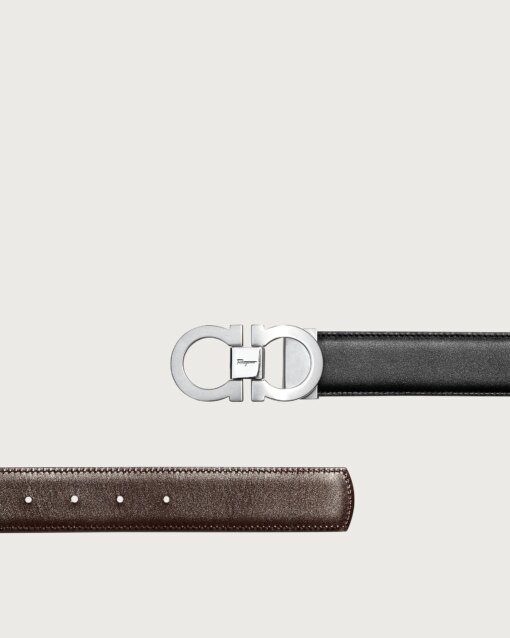 A unique and luxurious gift. This Belt Box comprises a stylish duo of two-tone belts in stamped fine-grain calfskin leather, as well as two Gancini buckles – one palladio finished and the other gold-tone. Each belt is easily adjustable, allowing the wearer to personalize the fit.