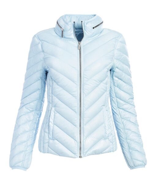 - Sky Blue Jacket Made with 100% Nylon shell; Lining, 90% pure down fill.