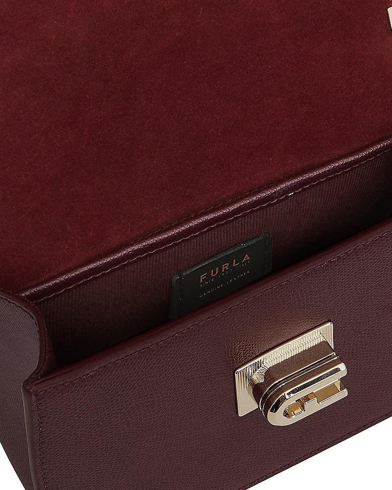 The Furla 1927 mini crossbody bag is made of elegant textured leather with leather strap featuring chain inserts. Perfect to wear also as a shoulder bag; it is characterised by the metal turnstile closure with Furla logo; which makes it practical and functional.