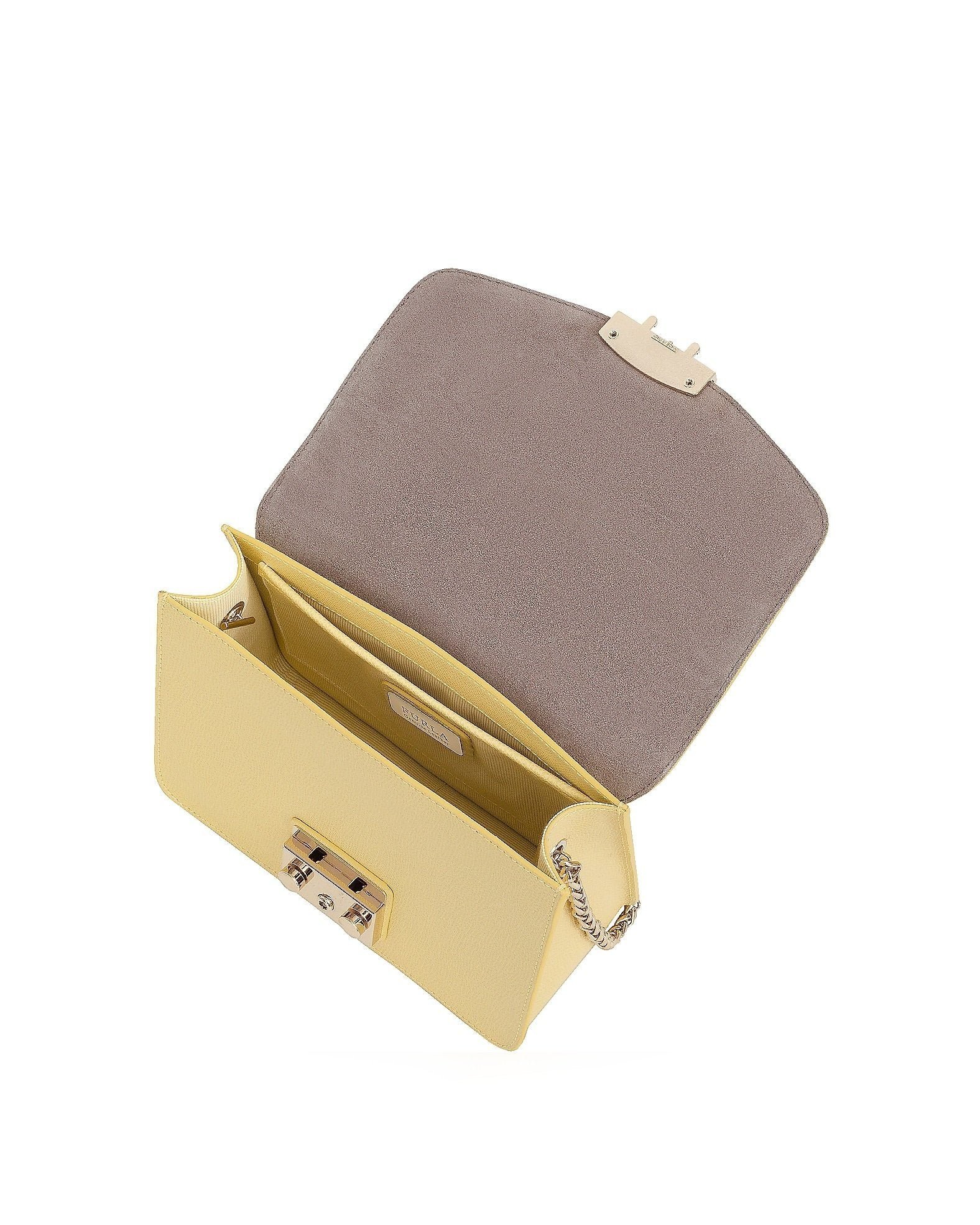 The metal closure of the iconic Furla Metropolis bag is decorative yet strongly recognizable.