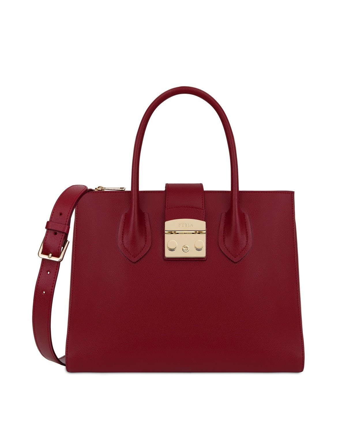 The Furla Metropolis shopper is made of textured leather and is characterized by the iconic metal closure which is highly recognizable. It can be worn as a handbag or as a shoulder bag thanks to the removable and adjustable strap and comes with a system of inner pockets, one of which zipped, which makes it a very practical and yet elegant piece.Â