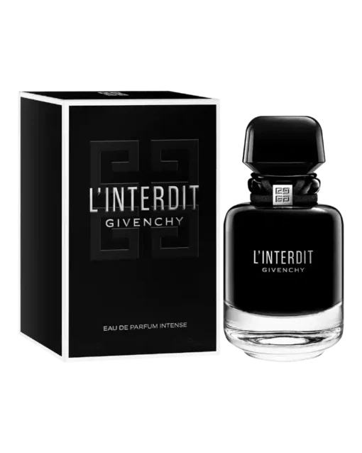 Givenchy L’Interdit Eau de Parfum Intense is a woody floral perfume with a warm & spicy embrace. This addictive fragrance has notes of orange blossom giving way to a bold heart of tuberose, leathered vanilla, and roasted sesame. A blend of vetiver and patchouli leaves an intoxicating thrill.