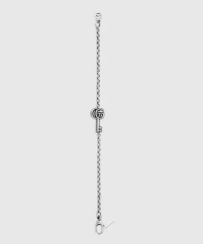 This sterling silver bracelet, with an aged finish, features a key with the now recognizable Double G as the top piece. Expertly made and intricately designed, often with subtle nods to the House, Gucci’s silver jewelry collection is presented in an array of contemporary and classic pieces.