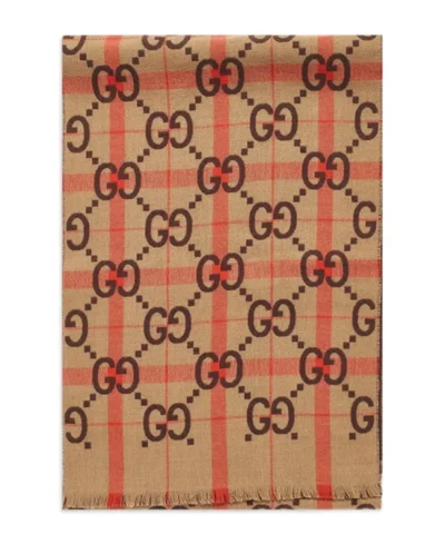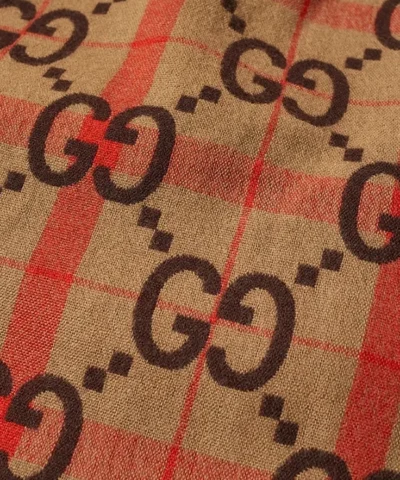 Nobody can do designer accessories like Gucci. The logo hasn’t changed much since the 30s, however the fashion house introduced the GG logo in the 1950s as an homage to founder and creator Guccio Gucci. The GG wool scarf is a jumbo sized scarf that features the GG logo embroidered as the pattern basis for this scarf, with alternating beige and brown sides.