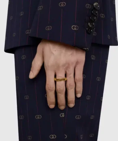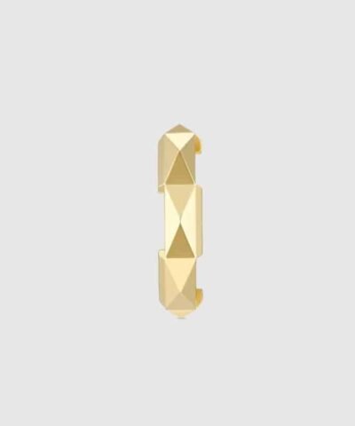 The Gucci Link to Love collection is an exploration of modern romance characterizing new symbols of love. The collection combines different gold tones and a mix of finishes blending the lines between masculine and feminine. Each piece is meant to inspire individualized ways to wear them with stackable and layered features. This 18k yellow gold studded ring has a stackable mechanism.
