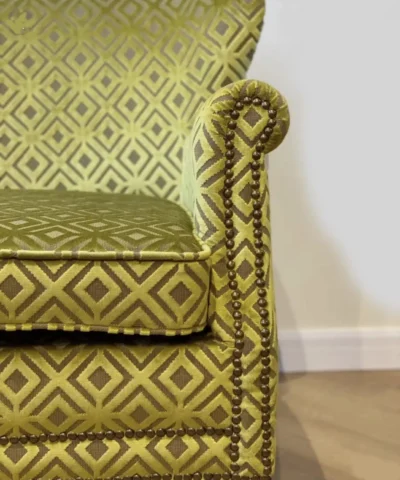 The striking set has button tufting adding texture and shape while the rolled arms bring just the right amount of luxury. The two peoples seat cushions feature pocketed springs and fret pattern jacquard velvet wraps for total comfort.