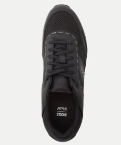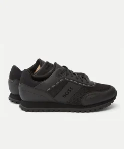A sporty trainer by BOSS for your footwear collection. Coming in a black colourway constructed from a mix of suede, leather and mesh uppers it is an intricate design. Completed with gold stripe detailing and signature BOSS branding throughout, they are a standout shoe that will fit perfectly into your casual footwear collection.