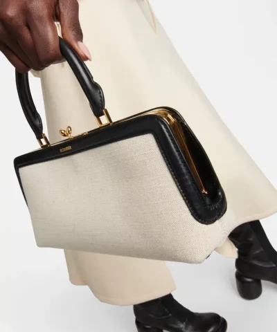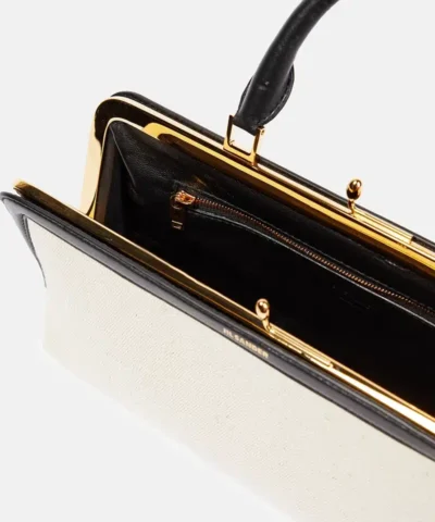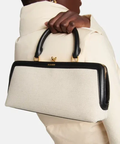 Directed by the principles of minimalism, Jil Sander makes a quiet statement with this tote bag. This canvas style has a purse clasp, gold foil branding, and leather trim.
