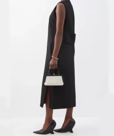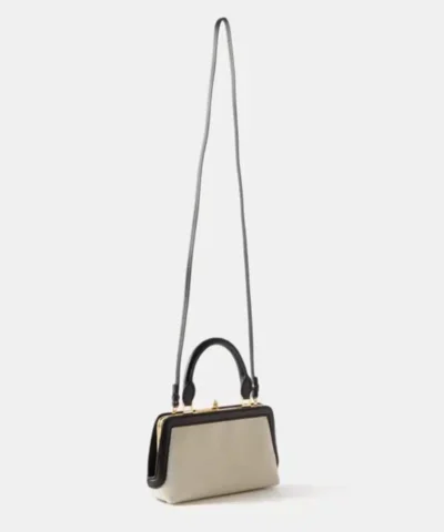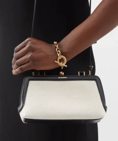 Jil Sander reimagines its Goji silhouette in miniature proportions for this cream and black iteration, made in Italy from cotton-linen canvas and trimmed with leather.