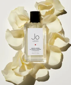 Enjoy the delicate scents of white rose, lemon peel and honey found in the Jo Loves White Rose and Lemon Leaves A Fragrance. Its bouquet warms and lingers as it blooms on the skin.