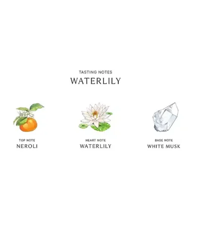 Radiant waterlilies, the crown jewel of a crystal-clear pond in a secret garden. These white petals release a clean floralcy that stirs and enchants. Representing enlightenment, the floating bloom has a dewy freshness that is enhanced with a flourish of jasmine sambac and neroli.
