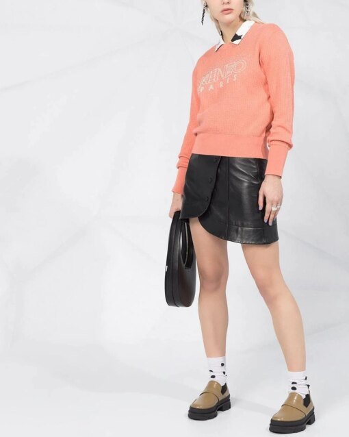 Coral-pink cotton beaded-logo textured sweater from Kenzo featuring a textured style, a ribbed round neck, long sleeves, a ribbed hem and cuffs, logo to the front and beaded embroidery. Cotton 100%, Machine Wash, Imported