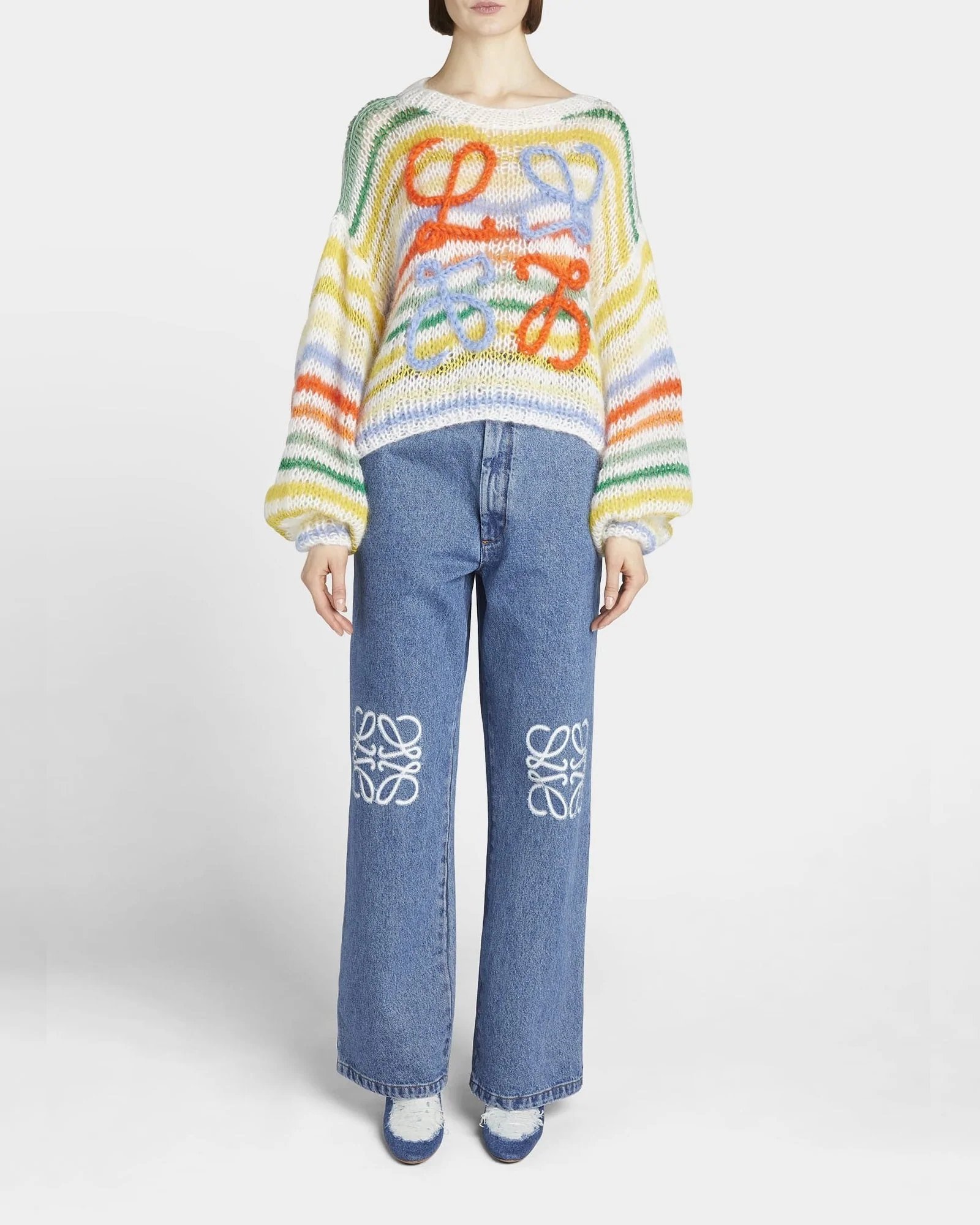 - Loewe multicolor stripe knit sweater with embroidered Anagram logo