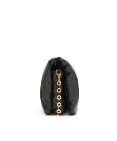 Inspired by the Goya aesthetic and key details, the Puffer Goya is bringing a new sensorial and tactile dimension, thanks to the shiny nappa lambskin emphasized by the goose feathers padding. It comes with a detachable metal donut chain.