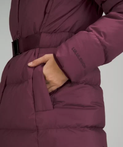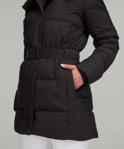 This wonderfully warm down puffer has a removable belt and hem cinch so you can customize the shape and keep out cold drafts.