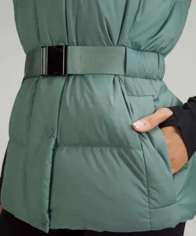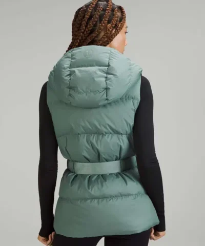 This wonderfully warm down puffer vest has a removable belt and hem cinch so you can customize the shape and keep out cold drafts.