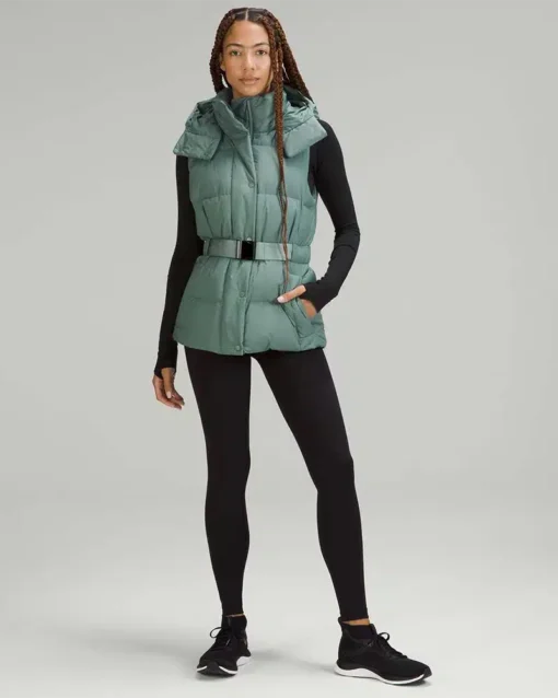 This wonderfully warm down puffer vest has a removable belt and hem cinch so you can customize the shape and keep out cold drafts.