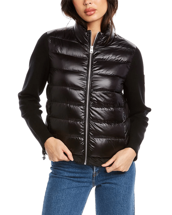 Complete with knit sleeves, the Oceane puffer coat from Mackage is filled with insulating down. The style features a rubber logo decal at the sleeve.