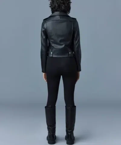 BAYA is a biker jacket for women crafted from supple sustainable (R) Leather. Tailored to a straight silhouette, it features the classic asymmetrical closure and snap notch collar. Effortlessly layered, the relaxed fit and action back ensure ease of movement. Finished with signature silver hardware and zip pockets for a timeless look.