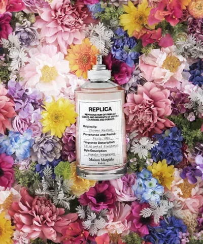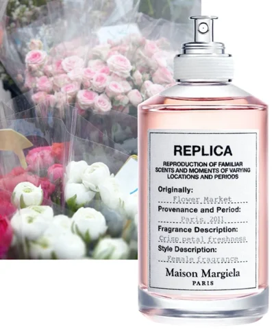 - Maison Margiela Replica Flower Market Eau De Toilette 100ml Women Spray A floral green fragrance for women Light, fresh, clean, leafy, delicate & joyful. Top notes are Freesia & Green Leaves. Middle notes are Jasmine Sambac, Egyptian Jasmine, Tuberose & Rose de Mai. Base notes are Peach, Oakmoss & Cedar. Launched in 2012. Suitable for daytime, casual or warmer seasons wear