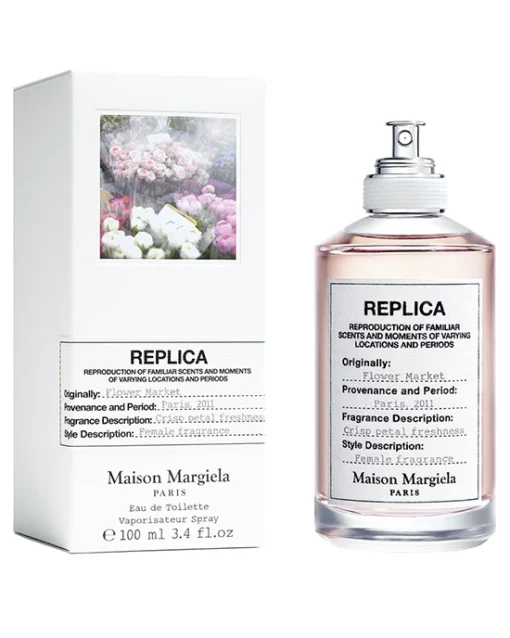 - Maison Margiela Replica Flower Market Eau De Toilette 100ml Women Spray A floral green fragrance for women Light, fresh, clean, leafy, delicate & joyful. Top notes are Freesia & Green Leaves. Middle notes are Jasmine Sambac, Egyptian Jasmine, Tuberose & Rose de Mai. Base notes are Peach, Oakmoss & Cedar. Launched in 2012. Suitable for daytime, casual or warmer seasons wear